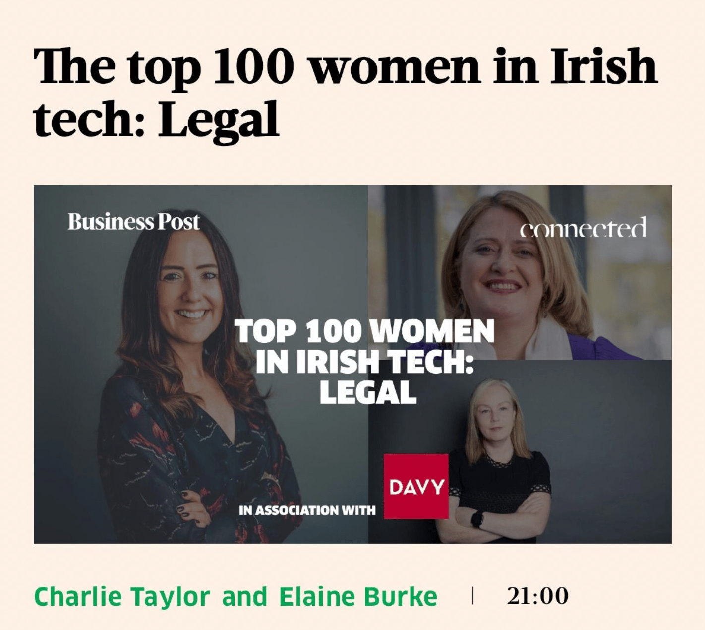 When Elaine Burke and Charlie Taylor (Business Post) say you’re one of the most influential women in Irish tech (legal), you best believe it ✨